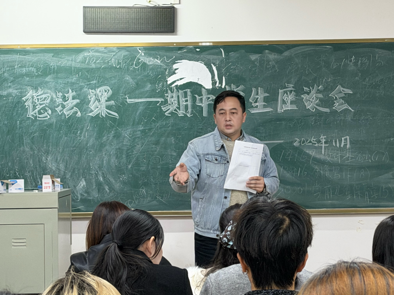(通讯员:员丽斐)为掌握2025年秋季学期“思想道德与法治”课程(以下简称“德法课”)的教学运行动态,搭建师生高效沟通桥梁,持续规范课程教学管理、提升教学质量,按照学校整体工作要求及学院工作部署,马克思主义学院“德法课”教研室11月3日在2518教室召开秋季期中学生座谈会。来自全校2025级各专业班级的40余名学生代表、部分授课教师受邀参会,“德法课”教研室主任罗建主持。