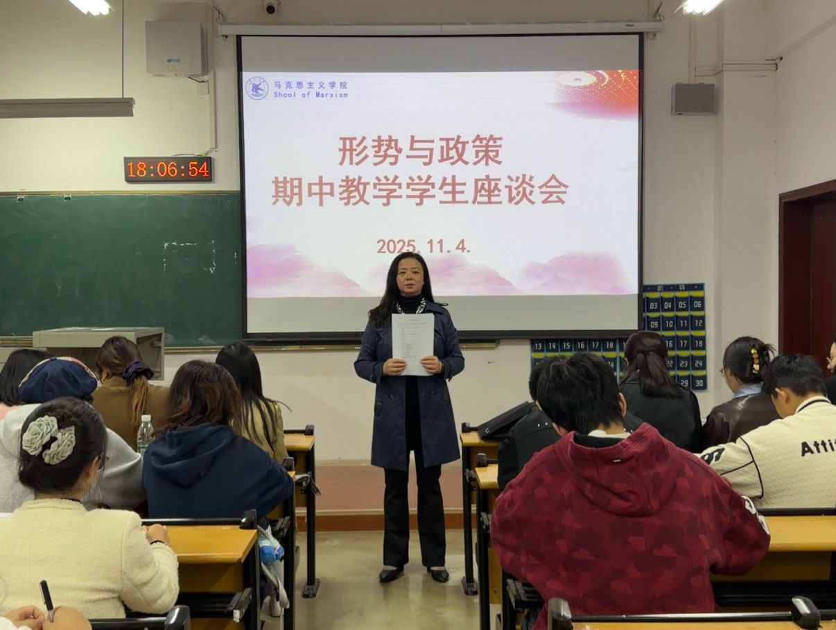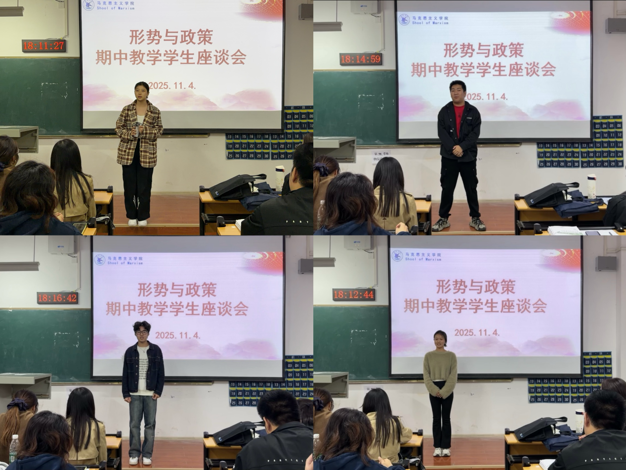 (通讯员:员丽斐)为深入践行“以学生为中心”理念,提升“形势与政策”课程教学质量,马克思主义学院“形势与政策”课教研室于11月4日在2512教室召开期中教学检查学生座谈会。来自全校不同年级、专业的学生代表及授课教师代表参会,“形势与政策”课教研室主任吴荣超主持。